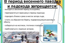 Не допускайте детей к реке без надзора взрослых, особенно во время ледохода предупредите их об опасности нахождения на льду при вскрытии реки или озера. Помните, что в период паводка, даже при незначительном ледоходе, несчастные случаи чаще всего происходят с детьми. Разъясняйте детям правила поведения в период паводка, запрещайте им шалить у воды, пересекайте лихачество. Не разрешайте кататься на самодельных плотах, досках, бревнах или плавающих льдинах. Оторванная льдина, холодная вода, быстрое течение грозят гибелью. Разъясните детям меры предосторожности в период ледохода и весеннего паводка.