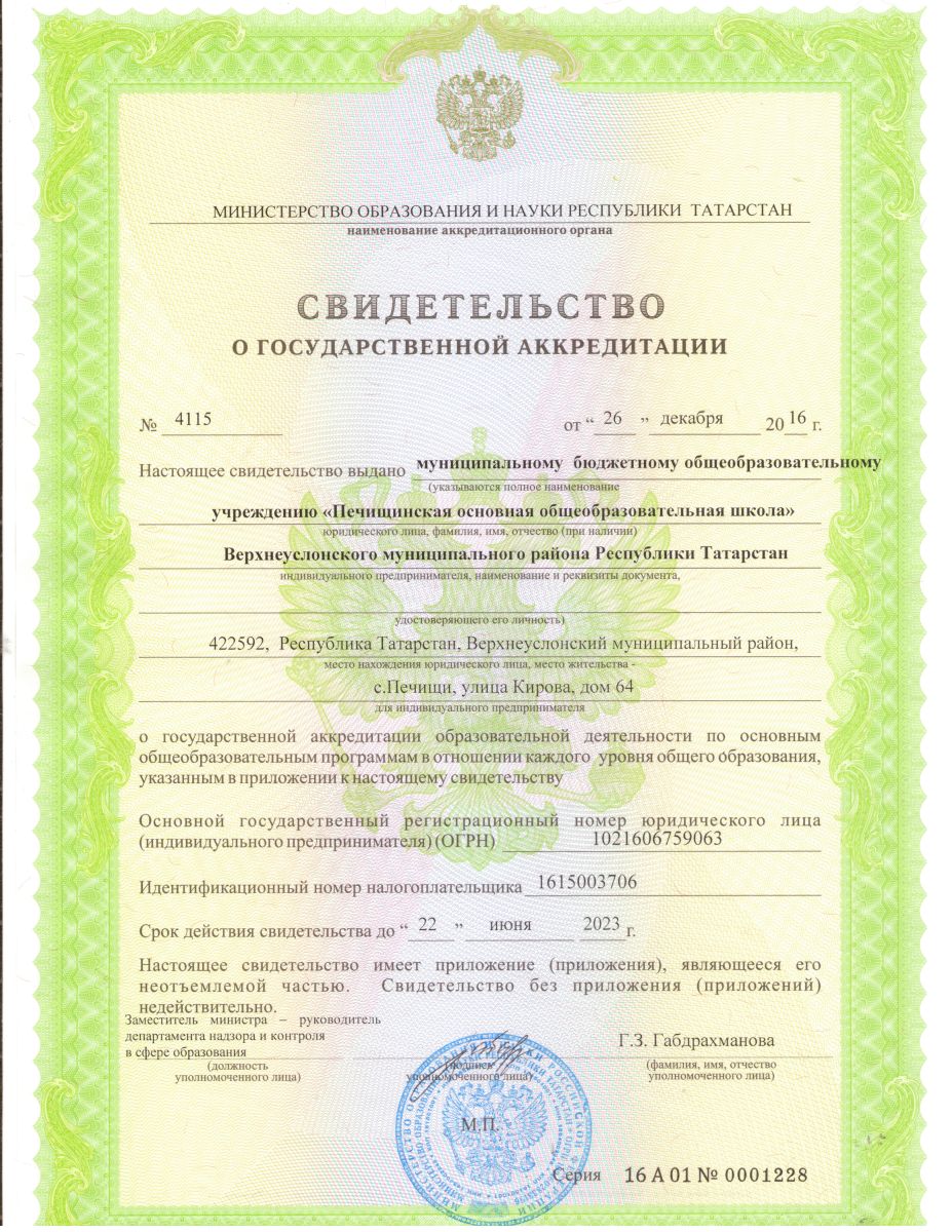Полное наименование: Муниципальное бюджетное общеобразовательное учреждение "Печищинская общеобразовательная школа" Верхнеуслонского муниципального района Республики Татарстан