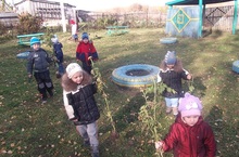 11 октября сотрудники МБДОУ "Майданский детский сад" вместе с детьми убирали засохшие цветы и листья на территории детского сада.