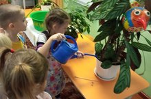 Детвора нашего детского сада любят ухаживать: поливать растения в группе детского сада, протирать крупные растения.
