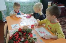 Сегодня в нашем детском саду на занятии по ознакомлению с природой, дети вместе с воспитателем, наблюдали за птицами, прилетающими к нашей кормушке. Вспоминали зимующих птиц. Сегодня мы говорили еще об одной удивительно красивой птице. Она редко прилетает на наш участок, но не заметить ее нельзя – это снегирь. Педагог сопровождал рассказ картинками и видеоматериалом про снегирей. В конце занятия дети рисовали пальчиковыми красками гроздья рябины.