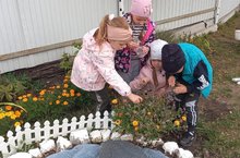 Зур кызыксыну белән тәрбияче Гөлназ Габдрахманова белән өлкән төркем балалары участокта эшләделәр, киләсе елда чәчү өчен чәчәк орлыкларын җыеп алдылар.