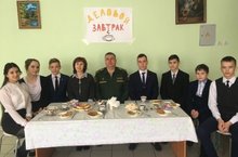 Не случайно в рамках месячника гражданско-патриотического воспитания состоялась в рамках проекта «Деловой завтрак» встреча с военкомом нашего района. Ведь именно руководители такого ранга личным примером прививают в детях любовь к своему делу, к своей профессии, воспитывают настоящих патриотов и граждан своей страны. В конце беседы Рустем Азгарович поинтересовался дальнейшими планами каждого присутствующего ребенка, с некоторыми из них он уже знаком, так как они желают связать свою дальнейшую жизнь с самой опасной, но престижной и почетной профессией военного, пожелала ребятам отличной учебы и успешного поступления.