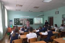 Очрашу барышында Перепелкина тарих укытучысы балаларны хәрби хәрәкәтләр зонасында катнашып килүчеләрнең һәм аларның фотосурәтләре урнашкан "Вакыт сезне сайлады" стендында игътибарын кисәтте. Дәрестә Төньяк Кавказда сугыш хәрәкәтләре ветераны, ХКК катнашучысы, Батырлык ордены кавалеры Владимир Валерьевич Дюсеев катнаша. Ул үз чыгышында балаларны уку елының башлануы белән котлады, яхшы уку теләде һәм булган вакыйгалар турында тәэсирләре белән уртаклашты, берничә тормыш хәлләрен сөйләде һәм район халкының ярдәме өчен рәхмәт белдерде. Очрвшуда шулай ук Янтыкова Ф.Р., Макаров А.Н., Хафизов K.I. чыгыш ясады. Аларның барысы да ватанпәрвәр тәрбияләүнең мөһимлеге һәм ГАҖ барышында кеше хокукларын үтәү турында сөйләделәр.