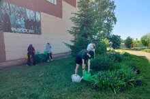 чәчәклекләрне утыйлар һәм су сибәләр. Мәктәп яны бакчасында балалар