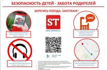 В целях профилактики травматизма несовершеннолетних на объектах железнодорожного транспорта создано приложение смартфона "SafeTrain - Берегись поезда", которое напоминает, что железная дорогоа - зона повышенной опасности. Приложение "SafeTrain - Берегись поезда" позволяет реализовать следующие основные функции: оповещение пользователя о приближении к опасной зоне (железнодорожные пути), блокирование проигрывания контента (музыка, видео и т.д.) при попадании в опасную зону (запустить проигрывание контента возможно только после выхода из опасной зоны); SMS - оповещение третьей стороны (родителей): об отключении приложения, об отключении геолокации, о попадании в опасную зону; родительский контроль местонахождения ребенка.