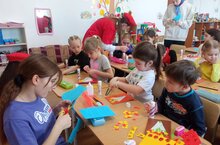 Учащиеся МБОУ «Верхнеуслонская СОШ» совместно с советником по воспитанию Антониной Банниковой приняли участие во Всероссийской акции «Благодарю» Общероссийского общественногосударственного движения детей и молодежи «Движение первых» в пилотном МДОУ «Радуга» Верхнеуслонского муниципального района. Дети подготовительной группы «Почемучки» совместно с активистами Движения Первых и Юнармейцами из шеф-школы стали участниками мастер-класса по созданию поздравительной открытки для Воспитателей. Школьники помогали и подсказывали детям в процессе создания открытки. Такого рода мероприятия развивают эмоционально-ценностных установки участников, популяризируют и укрепляют традиционные духовно-нравственные ценности, развивают навыки благодарности у детей, а так же учат проявлять заботу и внимание, содействию совместной деятельности детей ДОО и ОО, приобщению к активной деятельности Движения Первых и Юнармейцев. В завершении встречи, дети подарили сделанные открытки воспитателям детского сада «Радуга».