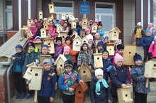 Сегодня в МБОУ "Верхнеуслонская СОШ" состоялась акция "Каждому скворцу свой домик", которая была запланирована в рамках Месячника Добра. В данной акции приняли участие 45 учеников начальной школы. Под руководством классных руководителей и родителей было изготовлено 45 скворечников. Скворечники получились самых разных форм, размеров и видов. Главное, что в них будет удобно будущим жильцам. Смысл акции- привлечь внимание к перелетным птицам, которые нуждаются в нашей помощи. Ведь птицы, живущие рядом, не только оказывают помощь для окружающей природы, но и радуют нас своим видом и пением. Но самое главное — это то, что строя скворечники, родители прививают детям любовь к птицам и животным, учат их бережно относиться к природе. Готовые скворечники ребята и педагоги закрепили на территории школы и в лесопосадке около улицы Олимпийская. теперь остается с нетерпением ждать появления в них новых жильцов.