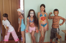 Сегодня 5 ноября в пришкольном оздоровительном лагере "Лучик" состоялся конкурс "Боди-арт". Ребята с большим увлечением создавали различные образы на лицах и телах друг друга. Фантазии не было предела: получились и тигры, и китаянки, и герои фильмов ужасов, а по некоторым из ребят даже ходили животные, оставив свои следы.