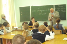 Сегодня в МБОУ "Верхнеуслонская СОШ" накануне 95-летия ВЛКСМ состоялась встреча учащихся 6-8 классов с героями социалистического труда Смирновой Л.Е. и Ивановым А.Я. Начала беседу Троицкая Р.С. - председатель Совета ветеранов нашего района - с предыстории о жизни в послевоенные годы. "Ребята, а знаете ли вы, сколько у нас в районе проживает героев социалистического труда? Что вы знаете о них? Имена каких героев Совестского Союза вы можете назвать?" . Оказалось, что один из героев социалистического труда, Бабушкин К., является выпускником нашей школы. Также она рассказала ребятам об истории медали "Серп и молот" (1938 год) и том, что к этой медали еще прилагался Орден В.И.Ленина и грамота Верховного Президиума СССР. Первым, кого наградили такой медалью, был И.В.Сталин. Далее Римма Сергеевна предоставила слово непосредственно самим героям труда. Смирнова Л.Е. поделилась с учащимися своими воспоминаниями детства, которое пришлось на послевоенные годы. Проработав почти полвека на заводе "Оргсинтез", Любовь Евгеньевна получила медаль героя социалистического труда. Следующим выступающим был Иванов А.Я. Он рассказал ребятам о том, что закончив ветеринарный институт им.Баумана по специальности "зоотехник", был направлен на работу в село Куралово. До этого недолгое время Александр Якимович работал директором совхоза в Майдане. После того, как гости выступили, учащиимся была дана возможность задать им вопросы. Закончилась встреча экскурсией по школьному музею, в котором специально подготовленные "гиды" рассказали об имеющихся здесь экспонатах.