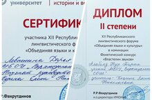 28 февраля в Высшей школе иностранных языков и перевода Института международных отношений, истории и востоковедения Казанского (Приволжского) федерального университета состоялся XII (XXVI) Республиканского лингвистического форума «Объединяя языки и культуры» (“Bridging Languages and Cultures”). В данном мероприятии приняли участие две ученицы МБОУ "Верхнеуслонская СОШ" Левашина Дарья и Алябьяд Нур. Поздравляем обучающихся с этим событием, желаем не останавливаться на достигнутых результатах.