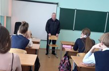В МБОУ "Верхнеуслонская СОШ" прошел урок памяти, посвященный трагедии Хатыни и сегодняшним событиям на Украине. Перед обучающимися выступает выпускник нашей школы, ветеран труда Геннадий Летников.