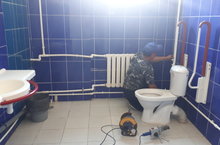 В Верхнеуслонской школе полным ходом идет подготовка к отопительному сезону: выполняется опрессовка труб, замена неисправных радиаторов на новые, покраска радиаторов.