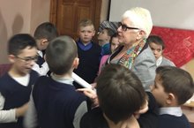 Бүген 2а сыйныф укучылары рус яулыгы һәм шәле тарихына багышланган уникаль күргәзмәдә булдылар. Троицкая Римма Сергеевна, күргәзмәнең төп бурычларының берсе – рус яулыгын аның бөтен гүзәллегендә һәм күптөрлелегендә: тукыма төрләре, бизәнү ысуллары буенча һәм рус традицион костюмының аерылгысыз өлеше буларак күрсәтү, дип сөйләде. Балалар Россиянең истәлекле вакыйгалары уңаеннан истәлекле яулыклар да чыгарылуын белделәр. Балаларга яулык киюнең төрле төрләре һәм аны бәйләү ысуллары турында сөйләделәр. Кызлар бик теләп модельләр ролендә чыгыш ясадылар. Римма Сергеевна балаларны тукымага рәсем ясау технологияләре белән таныштырды. Ә ахырда музей хезмәткәрләре балаларга сюрприз оештырдылар, аларны коймаклар белән сыйладылар.