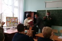 Балалар иҗаты үзәге педагогы Р.Троицкая, "Хәтер намусы" район эзтабарлар отряды җитәкчесе Югары Ослан урта мәктәбендә өлкән сыйныф укучылары белән очрашуга Россия Герое Алексей Козин, Лариса Александровнаны чакырды.