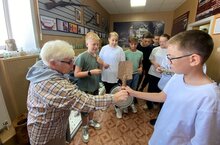 Ученики 7а класса МБОУ "Верхнеуслонская СОШ" посетили музей ПМК, где Римма Троицкая рассказала им об экспедиции на Невский пятачок. В раскопках, которые были организованы летом, участвовали и ребята из нашей школы, учатники кружка дополнительного образования "Совесть памяти". Римма Сергеевна показала ребятам детали найденного бомбардировщика. А самая главная находка экспедиции - останки солдата.