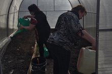 Карантин булуга карамастан, Югары Ослан урта мәктәбендә хуҗалык эшләре буенча директор урынбасары Наталья Козлова һәм башлангыч сыйныф укытучысы Наталья Маткина мәктәп территориясен тәртипкә китерергә әзерләнәләр. Алар ,элек чәчәк түтәлләре өчен утыртылган,петунья үсентеләрен һәм бархатцы орлыкларын теплицага утырттылар.