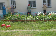 В МБДОУ "Шеланговский детский сад" идет ремонт. Руками сотрудников делается покраска групп, игровой площадки и здания.