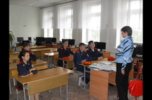 11 сентябрь көнне Лилия Курамшина, 11 сыйныф җитәкчесе, ""Кадет" исемен йөртүенә лаек" дигән темага сыйныф сәгате үткәрде.
