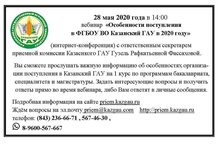 Особенности поступления в ФГБОУ ВО Казанский ГАУ В 2020 году 27.05.2020