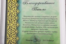 Благодарственное письмо Министерства экологии и природных ресурсов Республики Татарстан/ Татарстан Республикасы Экология һәм табигый байлыклар министрлыгының Рәхмәт хаты 08.09.2020