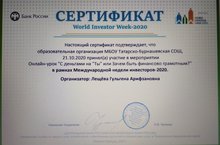 20 октябрьдән “Халыкара инвесторлар атналыгы – 2020” кысасында “Татар Борнашы урта гомуми белем бирү мәктәбе” МББУсендә 5-11 сыйныфлар өчен “Финанс грамотлыгы атналыгы” уза.