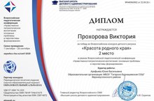 Ученица 2 класса МБОУ «Татарско-Бурнашевская СОШ» Прохорова Виктория получила Диплом за 2 место во Всероссийском конкурсе детского рисунка «Красота родного края» в рамках Всероссийской педагогической конференции «Нравственно-патриотическое воспитание: основные проблемы и перспективы формирования»