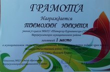 В каникулярное время ученик 6 класса МБОУ «Татарско-Бурнашевская СОШ» Никита Тимохин принял участие в муниципальном этапе конкурса сочинений, посвященном истории родного края периода Великой Отечественной войны 1941-1945 гг. на тему «Человек с большой буквы» и одержал победу, заняв 1 место.