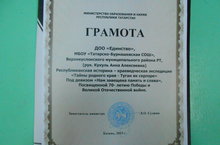 ДОО «Единство» имени Заикина И.А. , МБОУ «Татарско-Бурнашевская СОШ», получила грамоту от Министерства образования и науки Республики Татарстан.