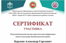 Казан шәһәренең Яңа Савин районындагы 177нче лицее базасында “Татар Борнашы гомуми белем бирү урта мәктәбе”МБББУсенең 6нчы сыйныф укучысы Александр Бурукин Татарстан Республикасы мәгариф һәм фән министры тарафыннан оештырылган А.М.Бутлеров исемендәге 3нче республикакүләм фәнни-гамәли конференциядә катнашты .