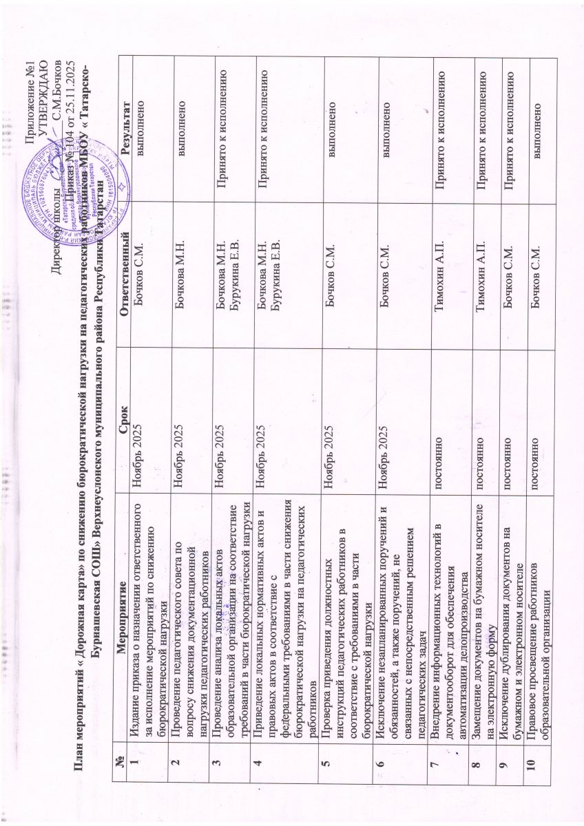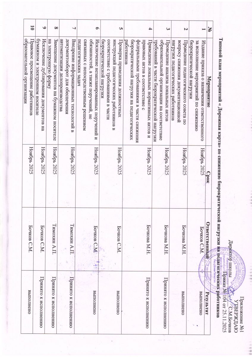 План мероприятий "дорожная карта" по снижению бюрократической нагрузки педагогических работников в 2025-2026 учебном году