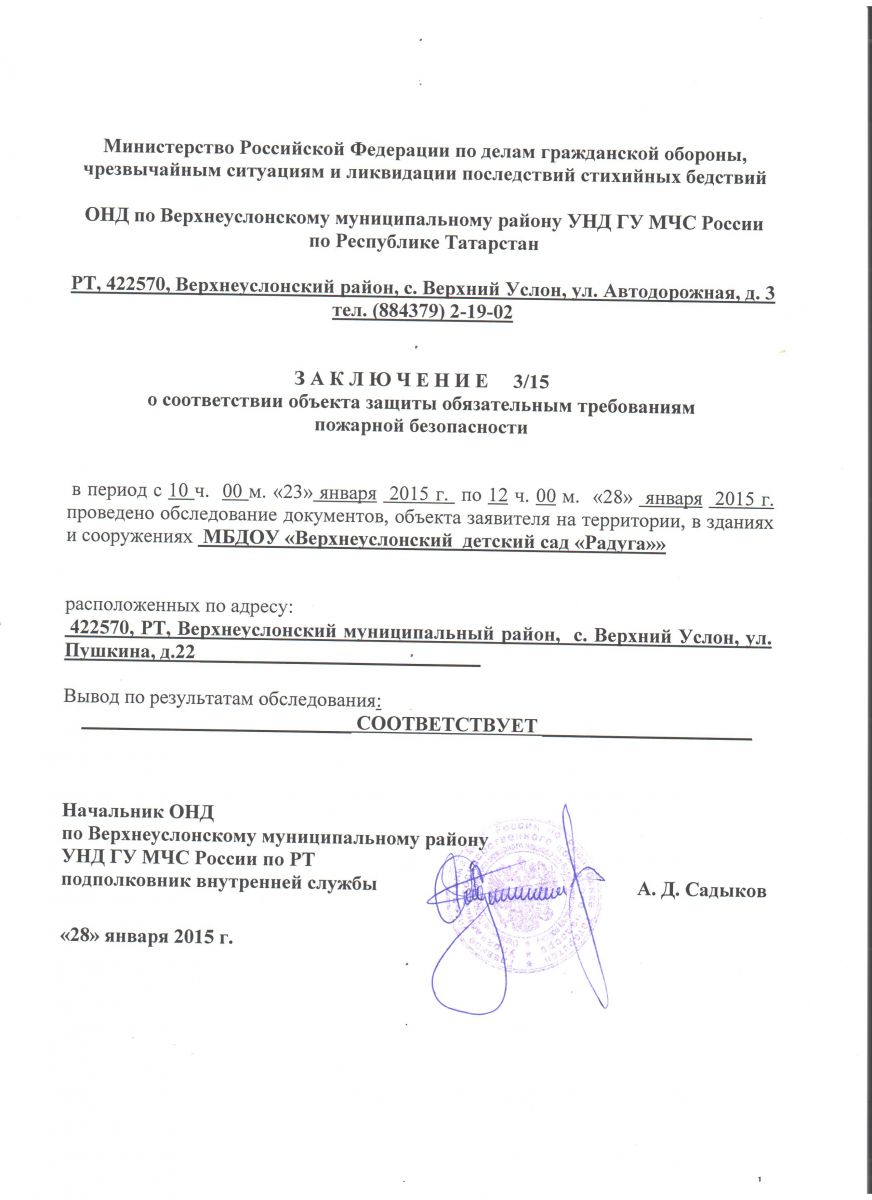 Заключение о соответствии объекта защиты обязательным требованиям пожарной безопасности