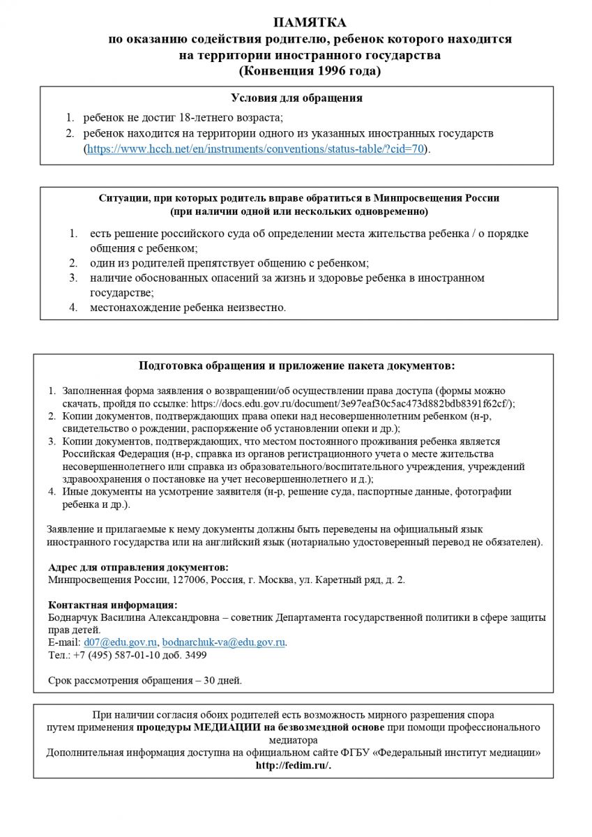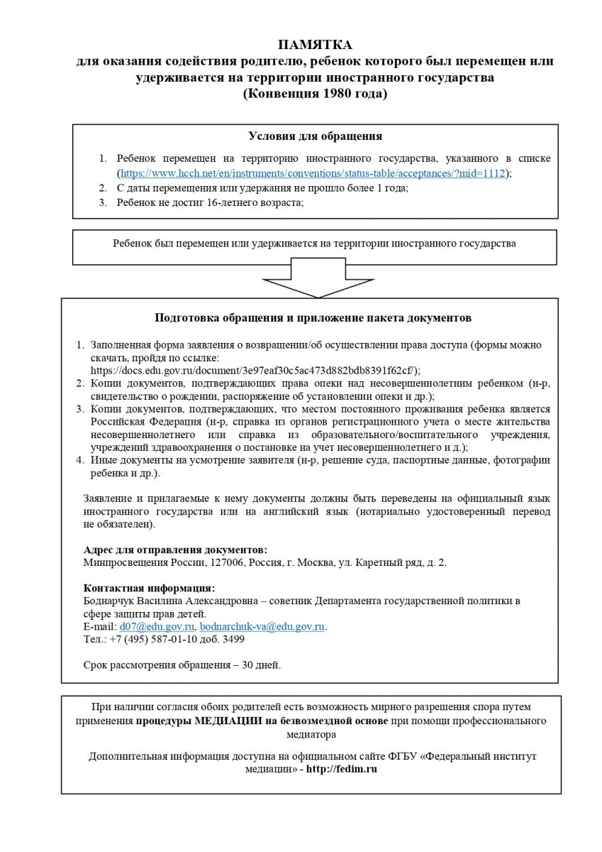 - ПАМЯТКА для оказания содействия родителю, ребенок которого был перемещен или удерживается на территории иностранного государства. 31.08.2020
