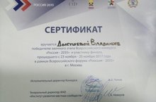 С трехдневного Форума «Россия, устремленная в будущее – 2035», который проходил в г. Москве, вернулись победитель заочного этапа конкурса Владилена Долгушева и ее руководитель Сергей Анохин. В рамках работы Форума ребята представляли свои инициативы, делились идеями о будущем России. Принимали участие в деловых обучающих программах, форсайт-сессиях, а также для участников Форума была представлена обширная культурная программа. Надеемся, что опыт и знания, полученные на данном мероприятии, Владилена успешно применит в будущем.