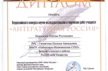 Ученик 6 класса МБОУ «Набережно-Морквашская СОШ» Ильгам Исмагилов награжден Дипломом призера Всероссийского конкурса научно-исследовательских и творческих работ учащихся. Конкурс проводился в рамках Общероссийского инновационного проекта «Моя Россия» и был направлен на изучение и популяризацию жизни и творческого наследия писателей-классиков. Учащиеся 5-11 классов могли представить на конкурс научно-исследовательскую или творческую работу.