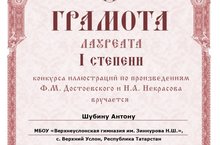 Учащиеся Верхнеуслонской гимназиии Шубин Антон и Шубина Александра стали победителями Всероссийского конкурса иллюстраций к произведениям Н.Некрасова, посвященного 200-летию.