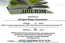 -Абгарян Наира, учащаяся 9 класса МБОУ «Татарско-Бурнашевская СОШ»- 3 место ( руководитель , учитель истории Дадыкина И.Н.)