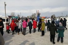 Масленица тамашасында безнең мәктәп укучылары да катнашты: Гайнетдинова Диләрә Масленица ролендә, Молостова Ксения - яз, Слесарева Юлия – кыш, ә Баранова Люба һәм Сергейчева Милана "Посею лебеду на берегу" җырын башкардылар.