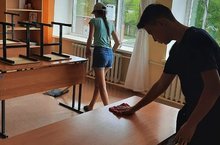 Подготовка к приемке школы. Обучающиеся 8 класса - Авхадиева Альмира и Каршиев Исломбек навестили школу и помогли в уборке класса.