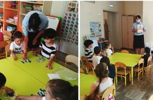 Бүген бездә ЮХИДИ әйдәүче белгече Зөлфия Вәгыйзовна Мозаффарова кунакта булды . Ул балаларны юл билгеләренең төрле төркемнәре белән таныштырды, аларның схематик рәсемнәрен аңлатты һәм алар ярдәмендә урам һәм юлларда ничек ориентлашырга кирәклеге турында сөйләде. Балалар татар телендә җәяүлеләрнең һәм велосипедчыларның куркынычсызлык кагыйдәләрен кабатладылар (алда, сулда, сулда, светофор сүзләрен истә калдырдылар) һәм балаларны юлларда куркынычсызлык кагыйдәләренә өйрәтү буенча дидактик уеннарны бик теләп уйнадылар.