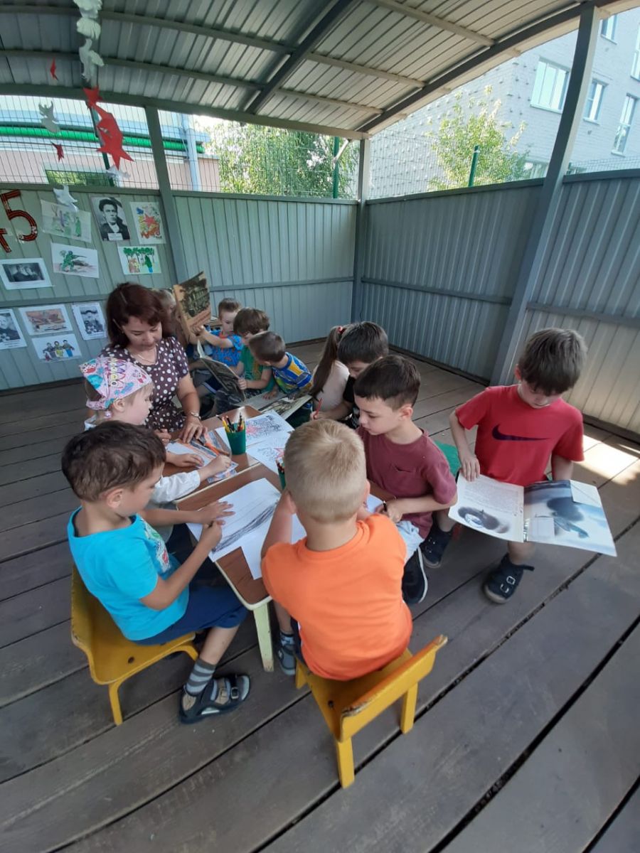 Не равнодушные воспитатели детского сада Лариса Николаевна Чулкова, Гульназ Вахитовна Шарафутдинова, Светлана Леонидовна Несмелова организовали с воспитанниками летние композиции на участках, оформили теневые навесы- веранды по тематике «75 лет Победы!» Педагоги к этому мероприятию подошли очень творчески, с энтузиазмом, подключив не только семьи воспитанников, но свои семьи.