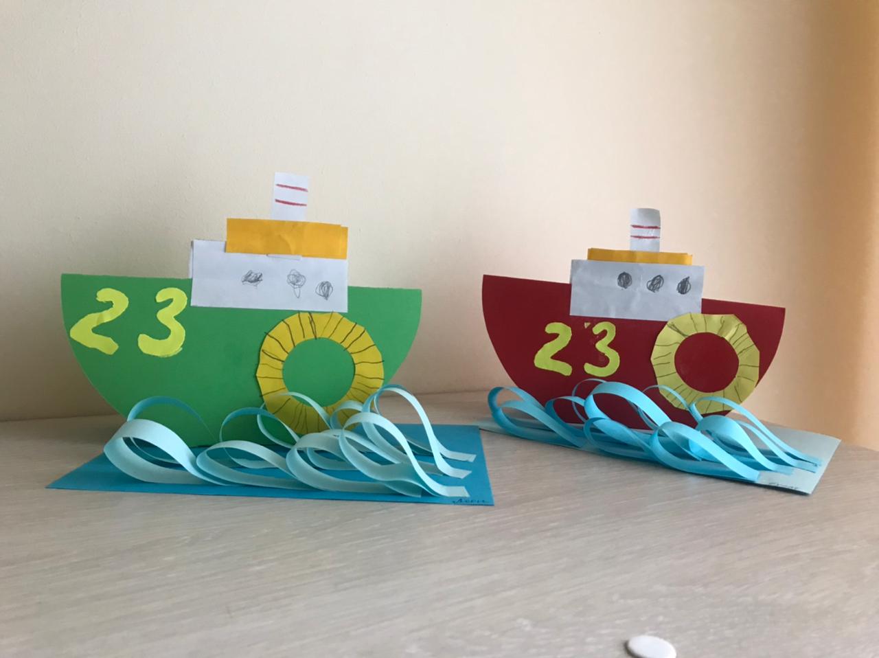 В преддверии праздника 23 февраля "День Защитника Отечества", в здании на Б. Красной 60/35 (первое здание) ребята изготовили поздравительные поделки в виде самолетов для своих папочек.