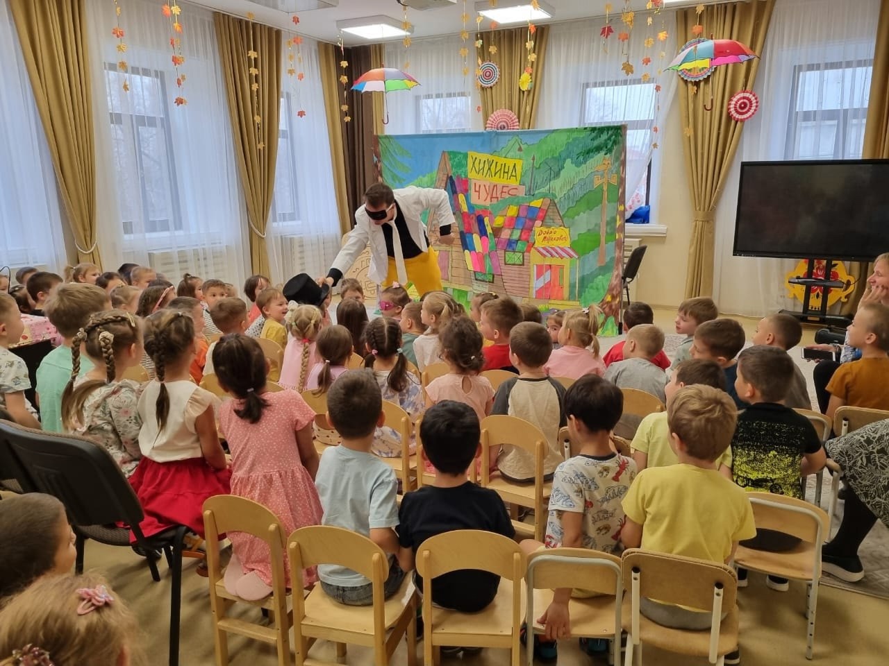 Дети смотрели за фокусами и удивлялись чудесам, отгадывали интересные загадки, играли и танцевали с яркими героями!