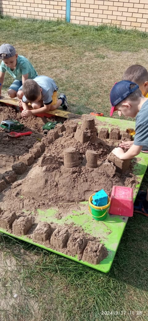 Ребята с удовольствием раскапывали ямки, рыли туннели, возводили башни, прокладывали дорогу и строили мостик.