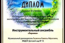 Инструментальный ансамбль "Лирники" под руководством музыкального руководителя К.А. Гасилиной участвовали в ХIII Открытом фольклорном фестивале-конкурсе Вахитовского и Приволжского районов г.Казани "Апрельские проталинки" заняли III МЕСТО.