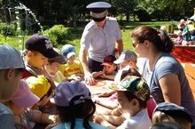 25 июля к детям в гости пришли старший инспектор по пропаганде отдела Вахитовского района Отдела ОГБДД лейтенант полиции Рахматуллин А.Г. и ведущий специалист ГБУ БДД ТУ по городу Казани Гайнуллина Г.Г.