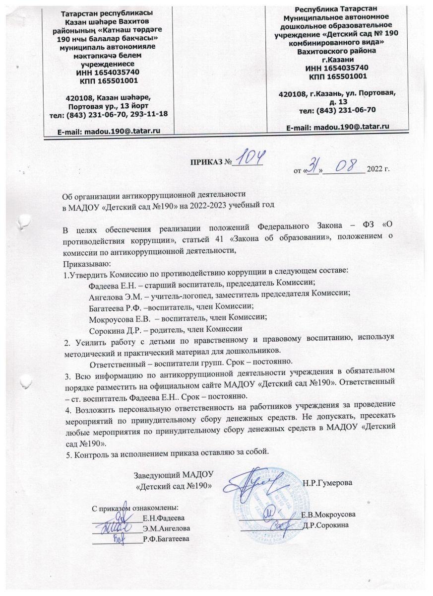 Приказ о внесении изменений в Положение об антикорупционной комиссии