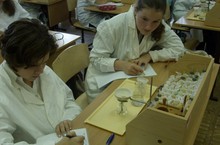 На уроке биологии ученики 6 классов приготовили препарат кожицы лука и рассмотрели его в цифровой микроскоп, а также поработали с компьютерами мобильного класса.