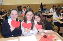 22 ноября 2011 г. учащиеся 7-9 классов познакомились с искусством вырезания из бумаги. Цзянь чжи является китайским традиционным видом вырезания орнаментов из бумаги, которое практикуется с 6-го века н.э.. Наиболее часто используется красный цвет бумаги. Изделия, вырезанные в этой технике, имеют много различных применений в китайской культуре. В основном они служат символами здоровья, благополучия, счастья. На этом уроке ребята самостоятельно вырезали иероглиф двойного счастья. У всех хорошо получилось. Молодцы. -