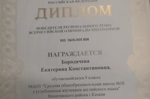 Наша ученица 9 класса Бородачева Екатерина стала победителем регионального этапа Всероссийской олимпиады по экологии. Поздравляем!